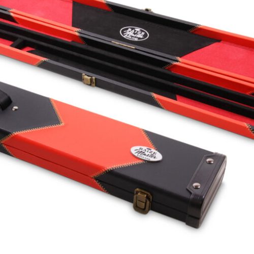 Our deluxe 3 Slot Baize Master cue cases are designed to hold a centre joint cue, telescopic extension, mini butt and chalks. They feature chunky plastic ends for improved protection mixed with an eye-catching arrow design for an overall, highly desirable cue case. Combined with an internal chalk compartment and matching colours suede style padded interior – this case offers the perfect blend of stylish looks and practical function. Finished with a quality exterior Baize Master metal badge and debossed logo in the handle.