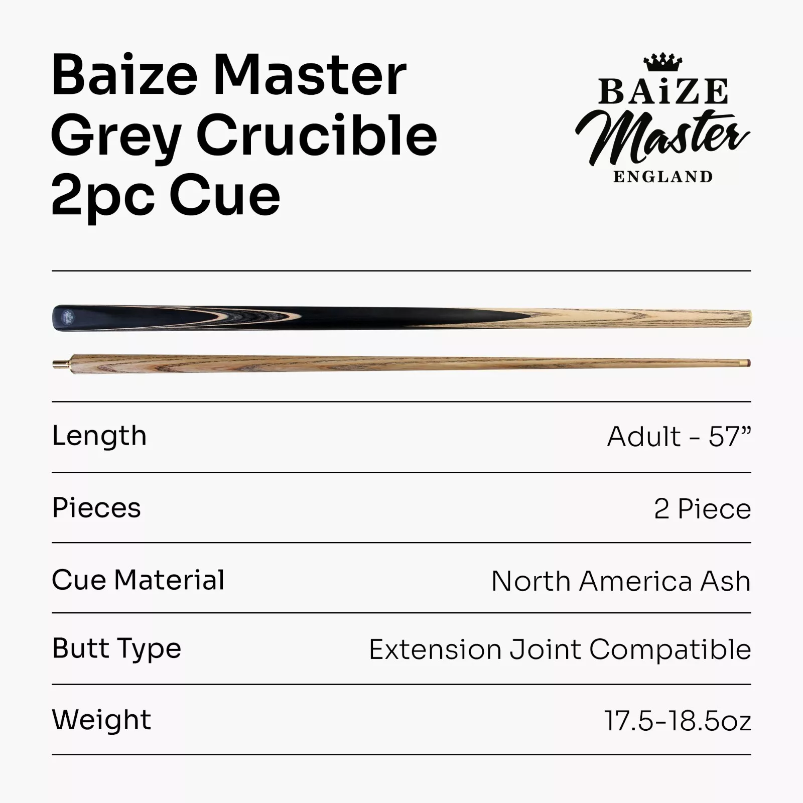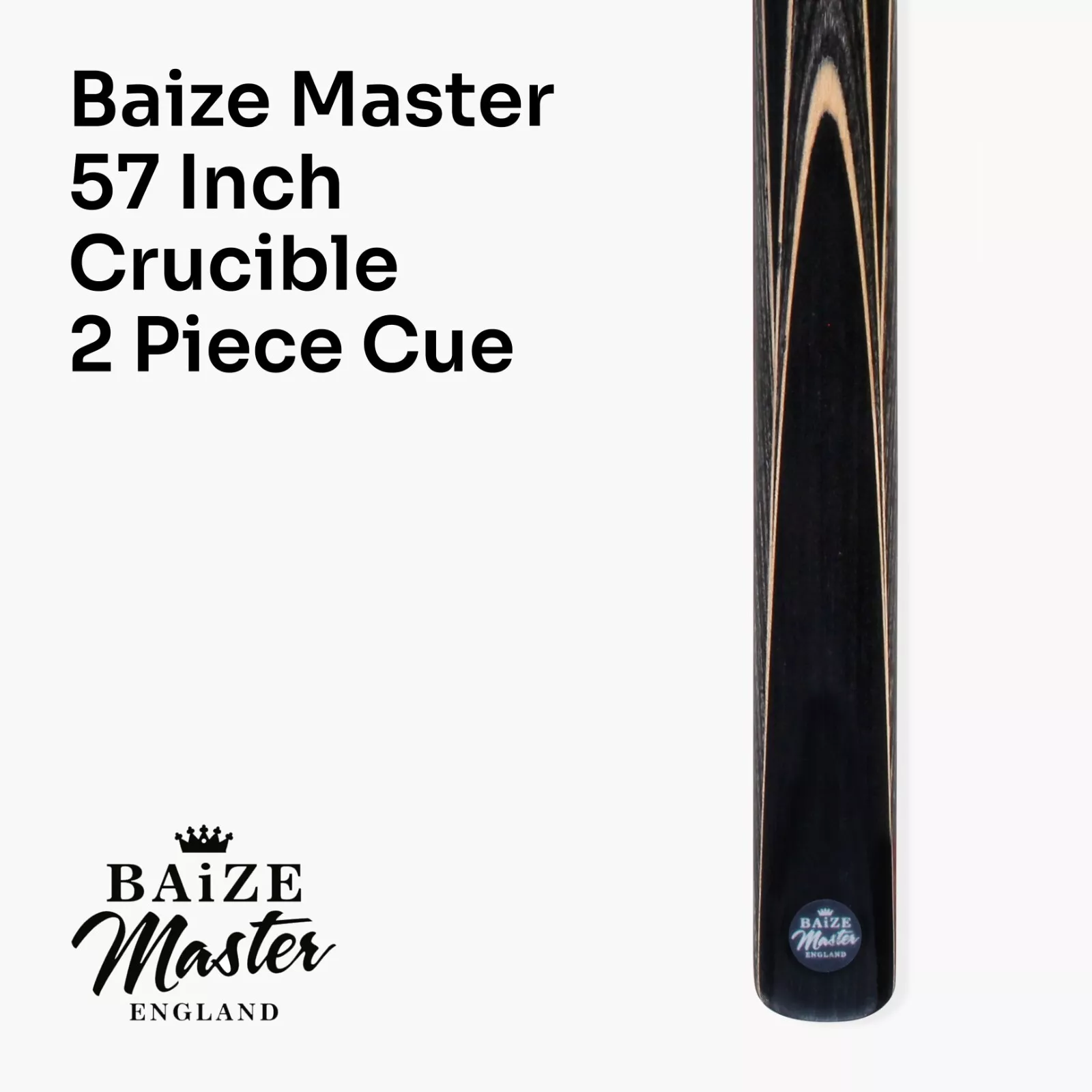 The CRUCIBLE range of cues from Baize Master are manufactured to high standards using modern innovative methods. The butt is hand spliced from a premium synthetic ebony wood with diamond wood splices, giving a quality feel with a superb look, whilst keeping the price affordable. Ebony is a rare and very expensive wood, making this type of cue more sustainable without compromising on the playability or aesthetics. With its silky-smooth, machine polished shaft and conditioned pro leather tip, this cue is supplied ready for action and is a true pleasure to play with.