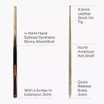 • Approx 145cm (57”) cue length with a centre joint