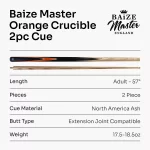 Baize Master ORANGE CRUCIBLE 57′ 2 Piece Snooker Pool Cue 9.5mm Tip + Mini Butt - Snooker 4 U - Snooker & Pool Cues, Accessories, Balls, Cases