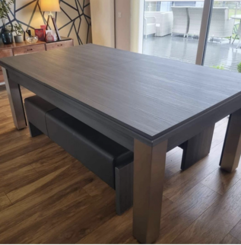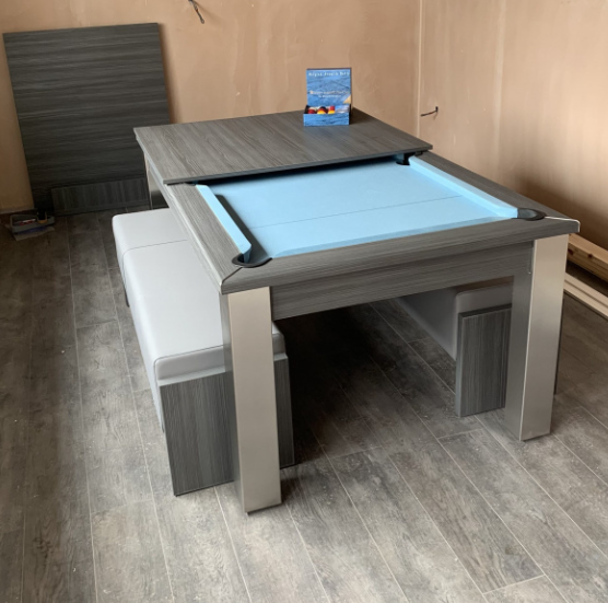 - Matching Accessories – Option to include additional Matching Benches and Cubes with numerous colours of upholstery. Both the benches and cubes are great space savers as can be pushed underneath the table when not in use. The Cubes are ideal for the ends of the table to accompany the benches at the sides but can equally be used as an alternative to the benches. In addition the Table Top Stand secures your tops, ensuring no damage whilst playing pool. This also helps complete the look of your room as the stand will match your table.