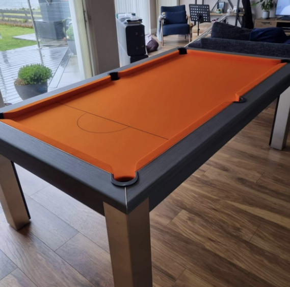 After listening to feedback from our customers we are now able to offer a darker shade of grey Smart napped wool cloth known as Pewter. The cloth colour is almost identical to the American style Charcoal coloured Hainsworth Elite Pro cloth. One of our more popular cloth colours and available across all our range of English pool tables.