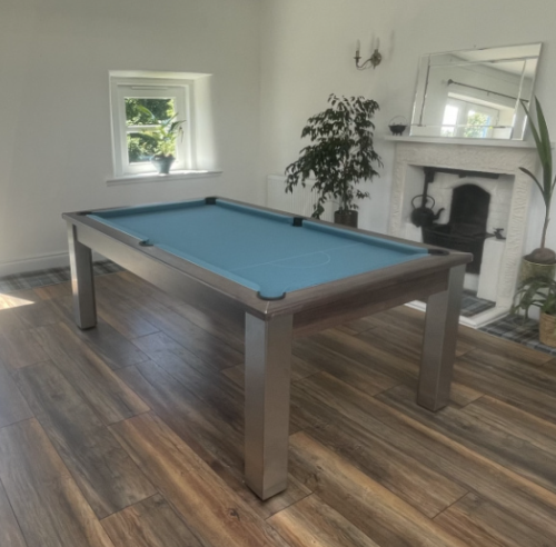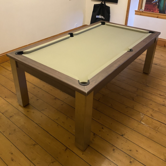 After listening to feedback from our customers we are now able to offer a darker shade of grey Smart napped wool cloth known as Pewter. The cloth colour is almost identical to the American style Charcoal coloured Hainsworth Elite Pro cloth. One of our more popular cloth colours and available across all our range of English pool tables.