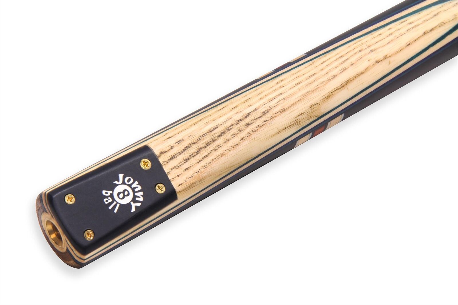Fresh from the Jonny 8 Ball ‘Traditional Range’ is this superb hand-spliced effect cue with a unique, complex splicing design featuring half moon spliced rings in the back of the butt and straight lines on the front. With a smaller 9mm tip, this cue is ideal for English pool but can also be used for snooker. The 3pc joint construction alleviates difficulty whilst playing in tight spaces making it perfect for pub or home use.