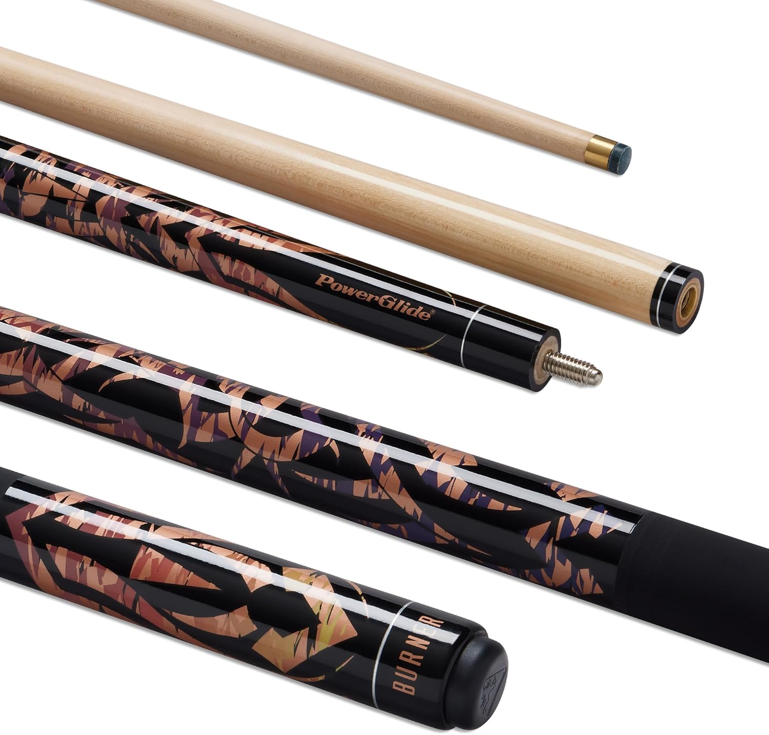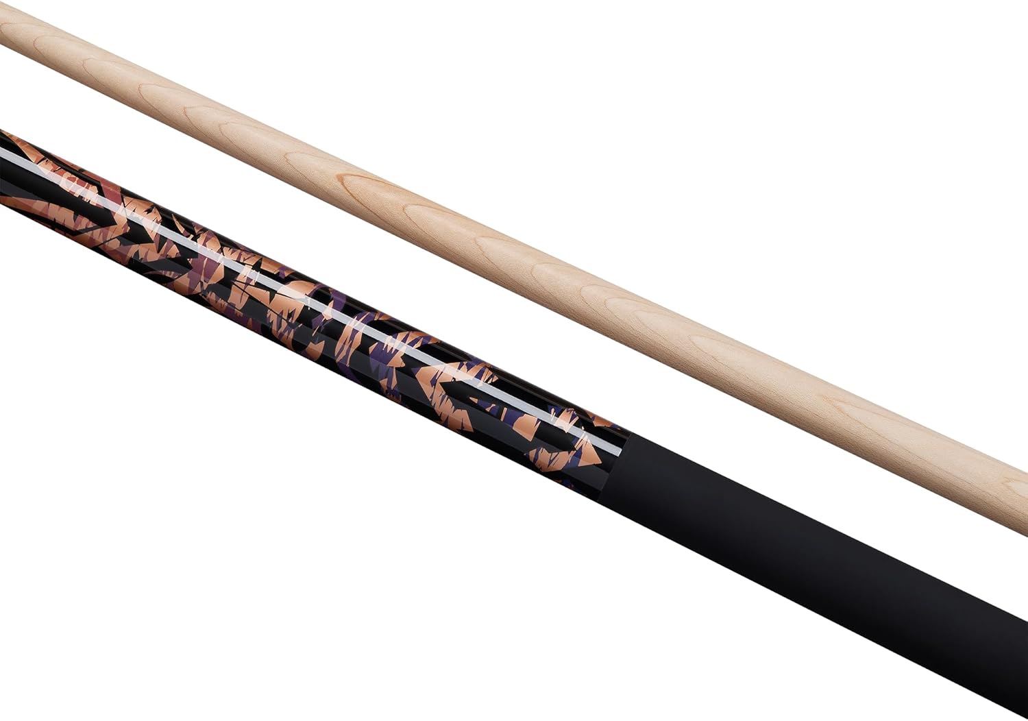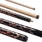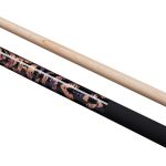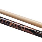 2 piece maple cue with ramin butt and decal design with rubber grip. Length 57″.