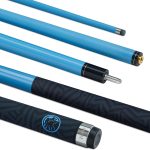 - THE CUE: 2 piece cue with 3K carbon and composite reinforced shaft and butt, The cue measures approximately 145cm (shaft length 72cm excluding the protruding male joint, butt length measures approximately 72cm)